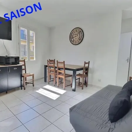 Appartement Plein Centre 300M De La Plage. Lägenhet erbjuder en kokvrå samt rum med soffa, sitthörna och Wi-Fi. Ranch Le petit Sam ligger 10 minuters bilresa bort, medan det tar 20 minuter med bil att nå Beziers Cap d'Agde flygplats.
